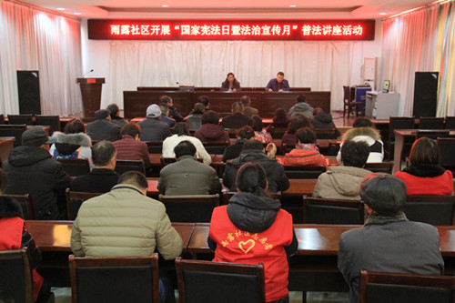 12月4日是第四个国家宪法日,也是第十七个全国法治宣传日,豫新街道雨露社区开展了“国家宪法日暨法治宣传月”法治讲座活动。弘扬宪法精神,助推社会树立宪法法律至上、法律面前人人平等的法治理念。