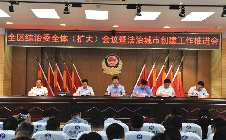 为进一步贯彻落实全市综治委全体(扩大)会议、全市法治政府建设工作会议精神,加快推进综治平安建设各项目标任务,部署我区法治城市建设工作,6月20日,宿豫区召开全区综治委全体(扩大)会议暨法治城市创建工作推进会,区委常委、政法委书记吴昊,副区长、区公安分局局长袁凤彬,区检察院检察长许兴军等领导参加。