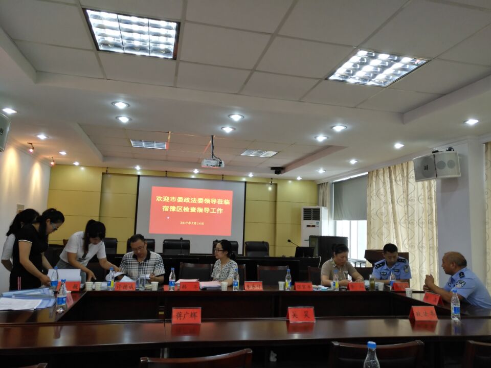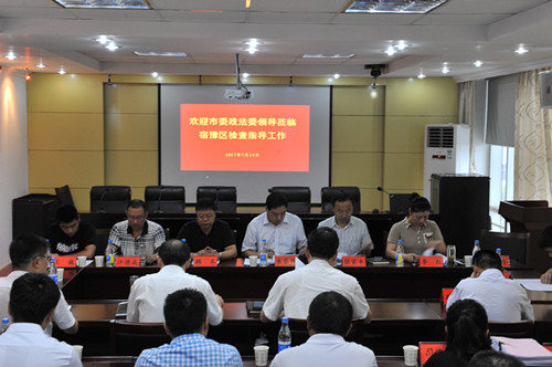 7月14日上午,市法治办副主任朱东升一行到宿豫区检查指导工作,区委常委、政法委书记吴昊陪同检查。